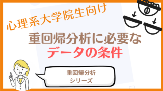 この記事は、心理系大学院生を対象とした統計法の学習ページです。重回帰分析に必要なデータ数ってどのくらい?データ数と変数の数の関係がよくわからない「データが足りない」って言われたけど、どうすればいいの?こんな悩みや疑問がある方はご参考ください...