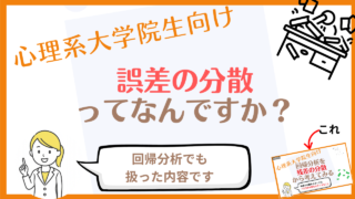 この記事は、心理系大学院生や統計学を学ぶ方を対象とした学習ページです。誤差の分散ってなに?重回帰分析の結果で「誤差の分散」という言葉が出てきたけどよくわからない予測の精度ってどうやって測るの?こんな悩みや疑問がある方はご参考ください( ˘ω...