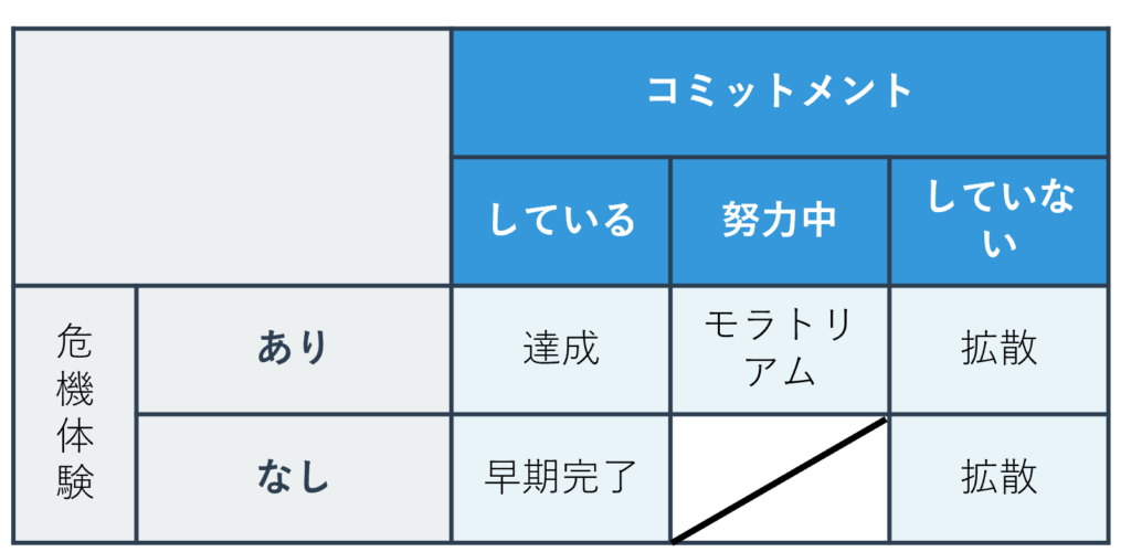 (4) 危機を経験せずに、コミットメントしている「早期完了」(foreclosure)
