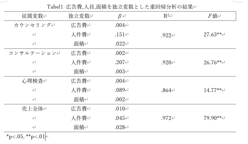 - 重回帰分析の結果ってどうやって論文に書けばいいの?