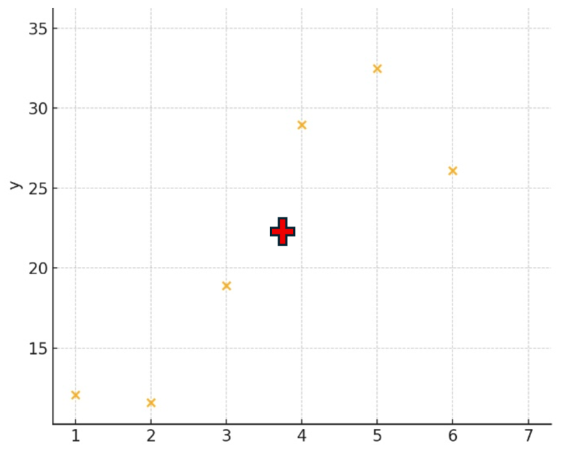 「×マーク=変数xとyの平均値」です。