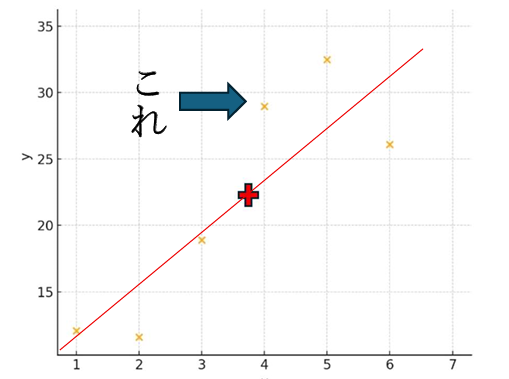 ただし、ここでの「ズレ」はx=4の場合だけの話をしてるので、他のデータも含めて、