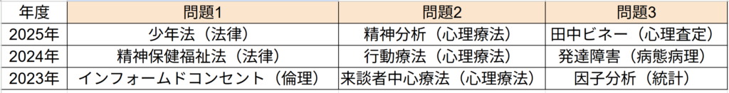 最後は、心理査定、病態・病理、統計と内容がバラバラです。