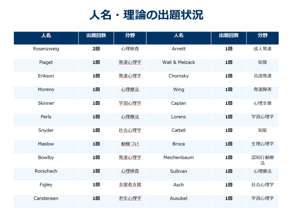 この分析結果から、この大学院を志望する場合、最低でも「心理療法」「法律」「倫理」「心理査定」「病態病理」「統計」の6つのテーマを抑えておく必要があると考えられます。