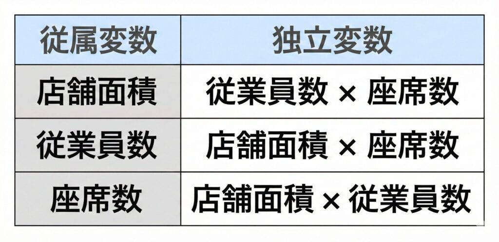 - 変数①:店舗面積
